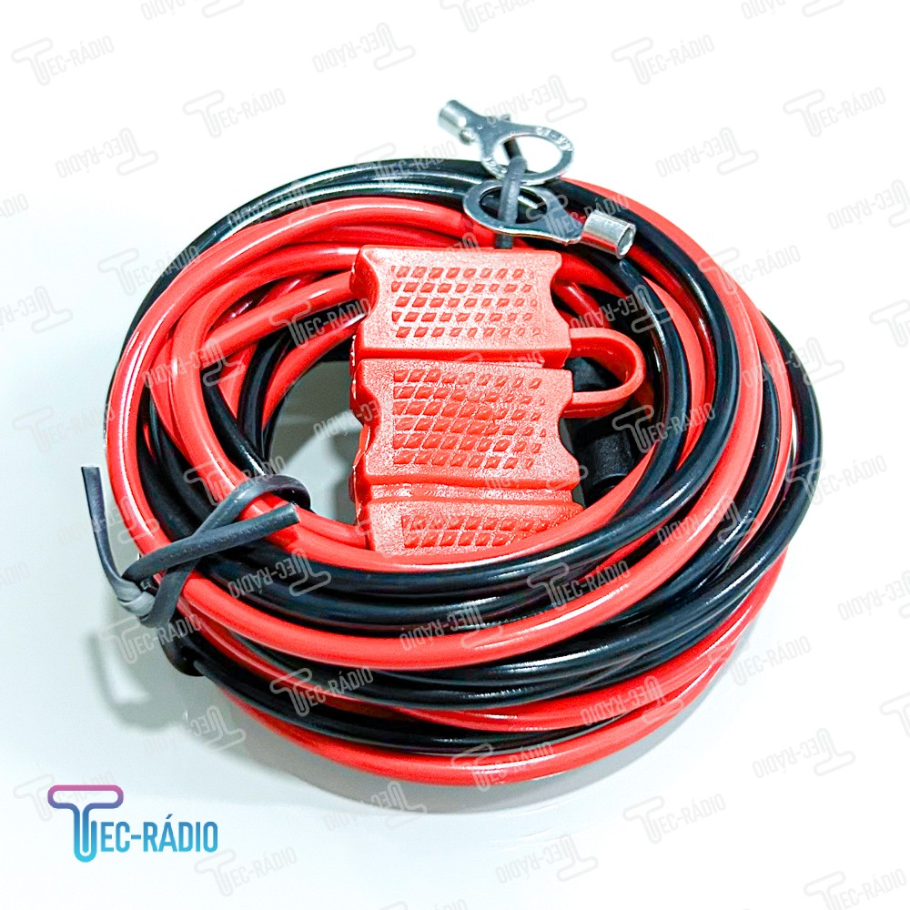 Características O cabo de Alimentação TEC-RADIO tem Conexão Padrão MOTOROLA, porta fusível injetado, construído e modelado com cabos flexíveis antichama de 2,5mm que suporta até 70°C com tamanho de 3,5.